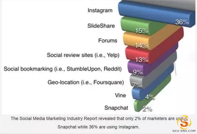 在snapchat上的活动是私人的。而且snapchat上发表的图片(没有要求必须是高质量的)是短暂的,当前只有2%的营销人员在使用snapchat。